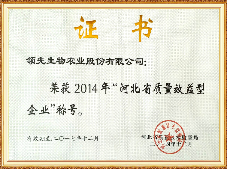 河北省质量效益型企业证书
